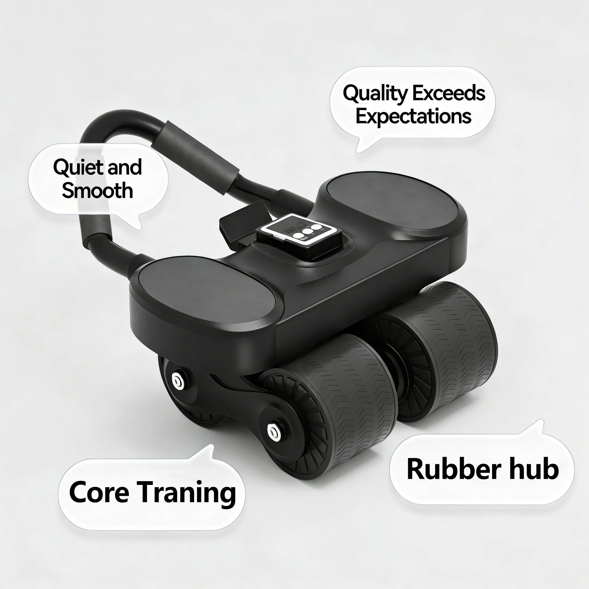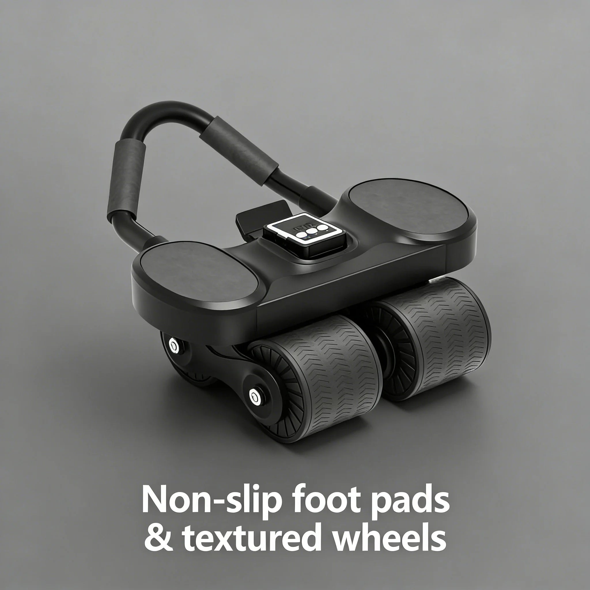 4-Wheels Ab Roller with LCD – Home Gym Equipment, Elbow Support, Non-Slip Handles, Tracks Time & Calories Burned.